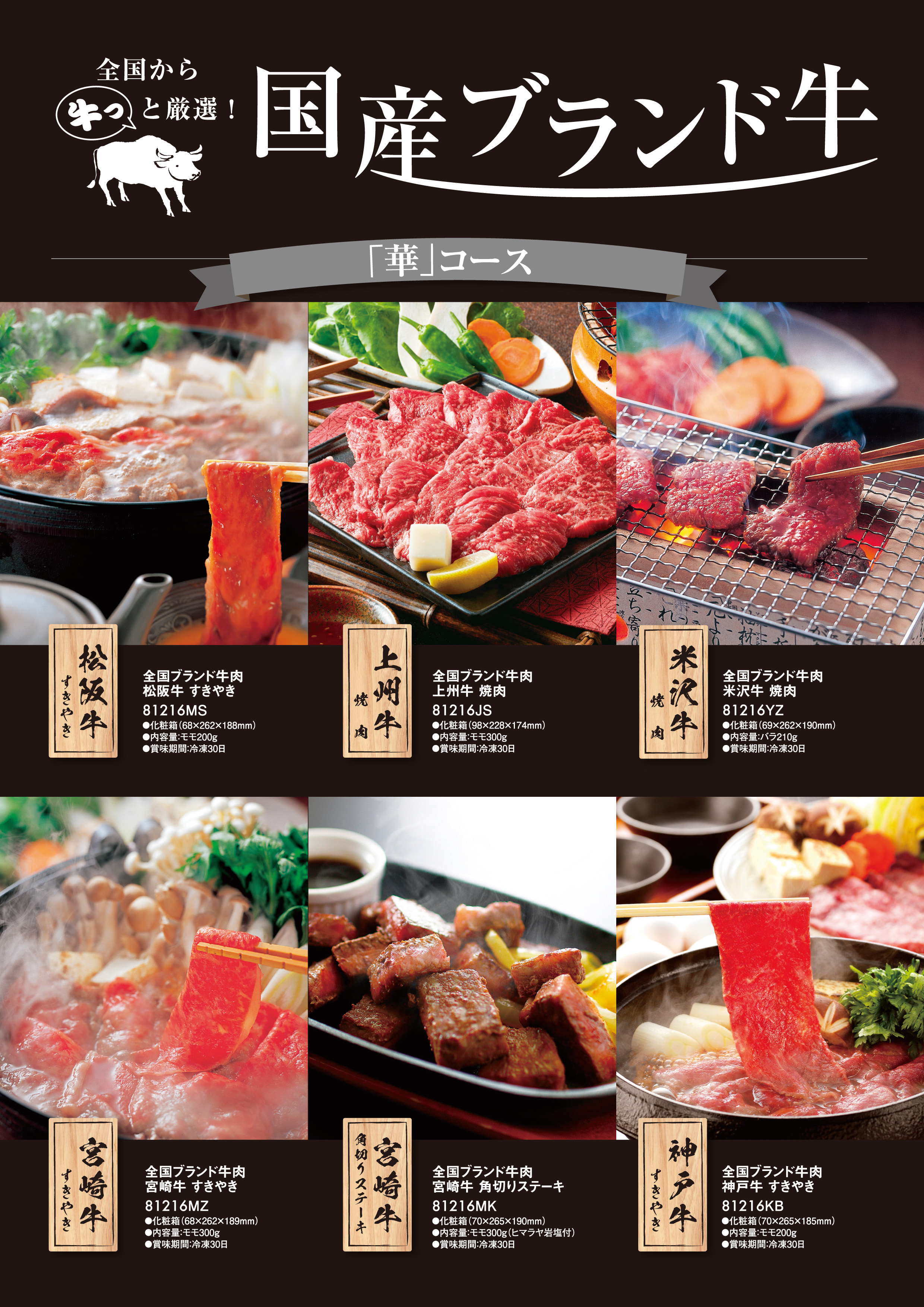 ブランド牛各6銘柄からお好みの一品を選んでいただくチラシデータを用意しました。